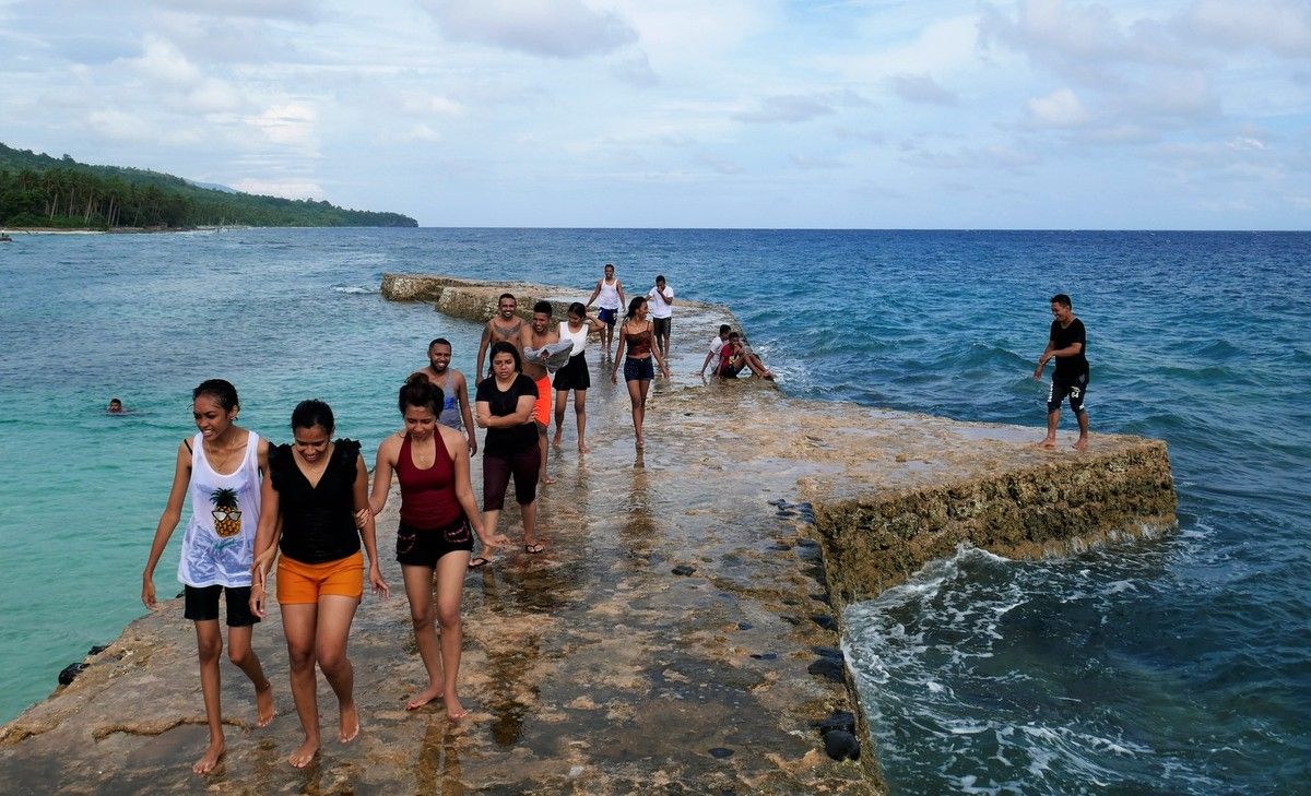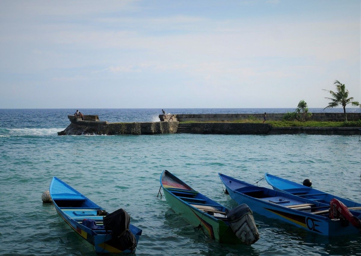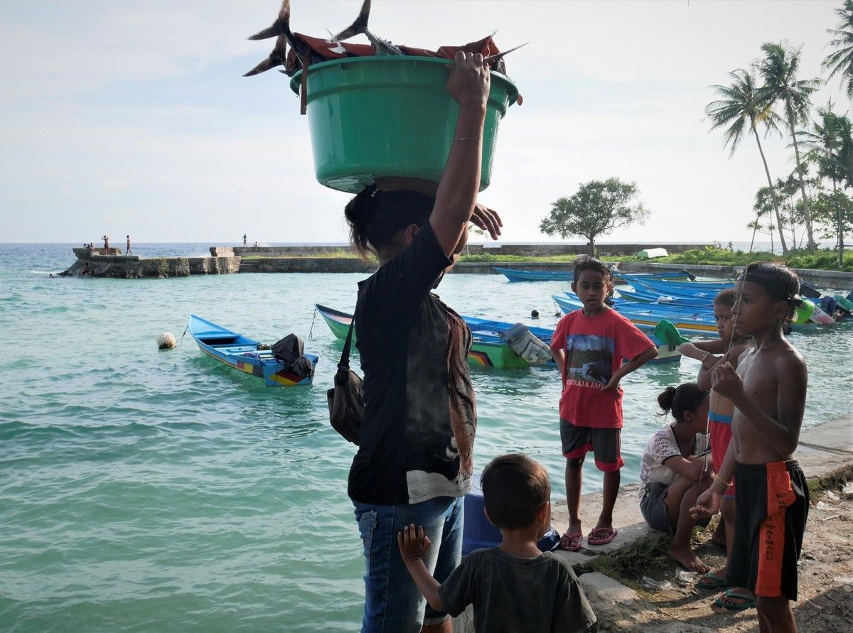 Leitimur, c'est le nom de la presque-île au sud d'Ambon que les ferrys longent, en arrivant des Banda au petit jour. Le coin n'est pas très touristique, même si les fonds sont clairs et poissonneux. Les villageois vivent de la pêche qu'ils vont vendre dès le déchargement du bateau au marché d'Ambon, en prenant un bemo public. On y trouve aussi de nombreuses briqueteries. Les habitants de Latuhalat ( " roi de l'ouest " ) se retrouvent encore dans leur maison commune, le baileu. Le dimanche, quelques chrétiens d 'Ambon ( plus de 300 000 habitants ) viennent passer la journée sur les plages, on sort l'alcool de palme mélangé à du seven up ! Dernière photo: la côte nord de Leitimur, vue d'avion.